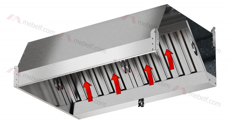 - Зонт вытяжной нержавеющий пристенный ЗВН03 – зонт пристенный выполнен из нержавеющей стали AISI430 толщиной 0,7 мм, задняя стенка изготовлена из оцинкованной стали 0,7 мм и оснащен встроенными нержавеющими жироуловителями для удаления жира. Имеет 1 врезку для оттока воздуха (размер врезки по согласованию).